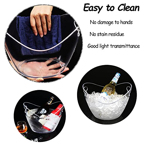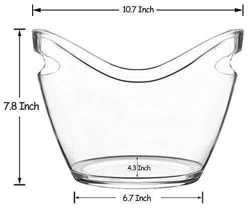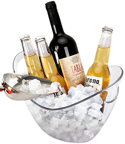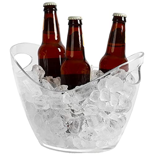 WAWW - جردل ثلج شفاف بسعة 3.5 لتر من الاكريليك مع مقبض، حوض تبريد بيضاوي للتخزين والتبريد مخصص للعصائر والمشروبات، موديل W-ClearIceBucket-4L 0 من واو، 27 × 20 × 20 سم