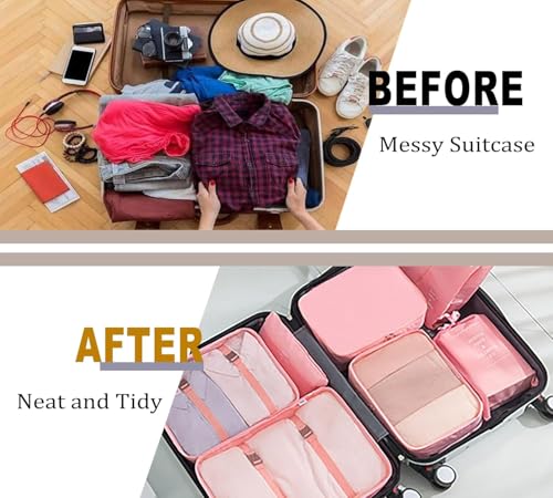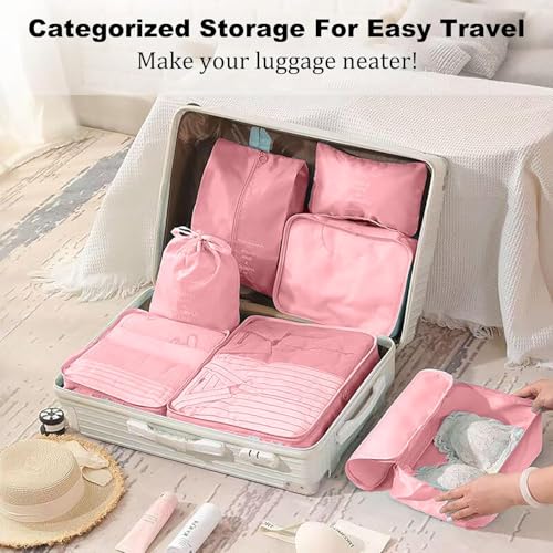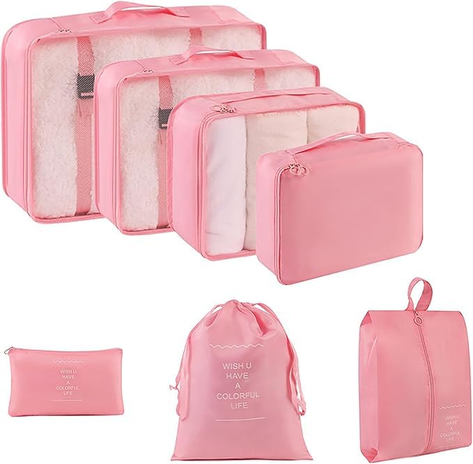 Wayfare - مجموعة شنط تنظيم تعبئة للسفر بشكل مكعب ومصنوعة من قماش ومقاومة للماء وتحتوي شنطة غسيل وشنطة أحذية وشنطة أدوات زينة وشنطة ملابس داخلية من وايفير، مجموعة من 7 قطع بمقاسات متعددة، لون وردي