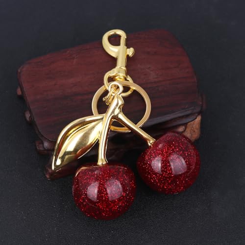 Wayfare - سلسلة مفاتيح بدلاية على شكل كرز فيروسي من وايفير، تعليقة حقيبة حمراء لامعة مع قطع معدنية ذهبية اللون
