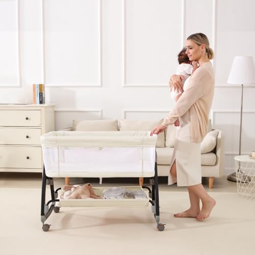 wayfong - سرير أطفال 3 في 1، سرير جانبي مع شبكة جيدة التهوية، سرير نوم بجانب السرير مع عجلات، شبكة ناموسية ضد البعوض، سلة تخزين، 6 ارتفاعات قابلة للتعديل، سهل الطي، سرير هزاز للأطفال من واي فونج