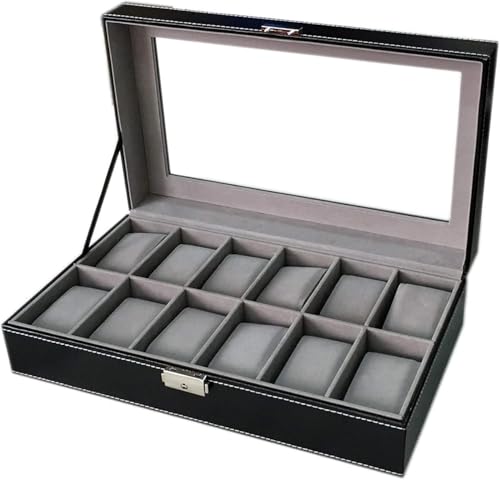 Generic - صندوق منظم للساعات من الجلد الصناعي مع جزء علوي زجاجي، مقاس L، اسود، WBPU12-03