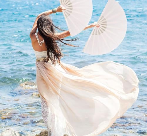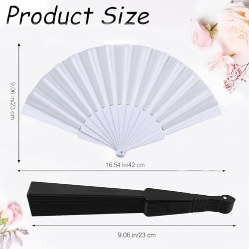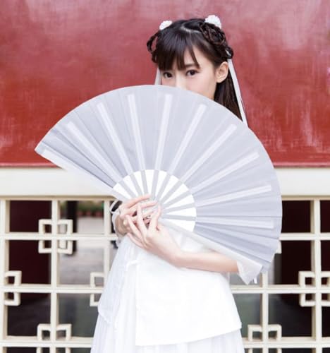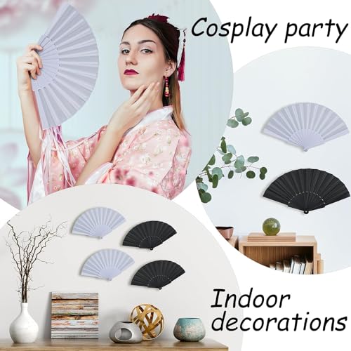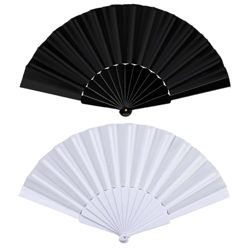 WchoeSS - مروحة يد قابلة للطي من القماش من WchoeSS، مراوح محمولة باليد صينية/ اسبانية للرقص والحفلات التنكرية وهدايا حفلات الزفاف (أبيض وأسود) من 2 قطعة