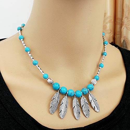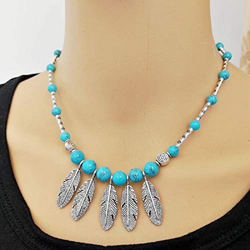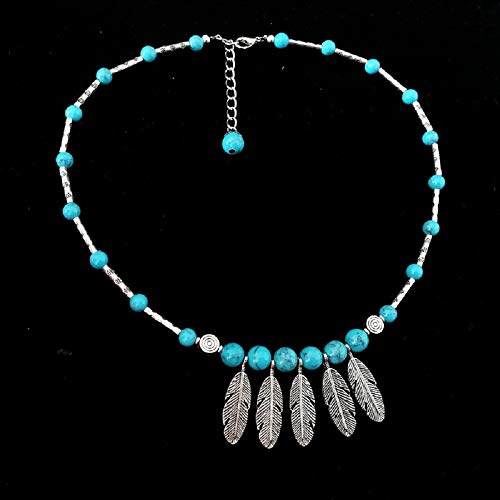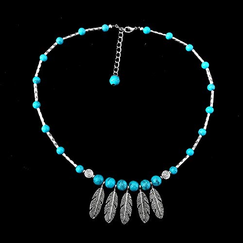 Generic - عقد ضيق قصير مع دلاية فضية على شكل اوراق شجر بتصميم شراشيب من وكيسين، للنساء