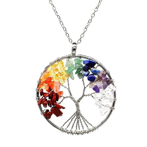 Generic - سلسلة فضية بدلاية زاهية عصرية دائرية بنمط شجرة للنساء والبنات من دبليو سيسين