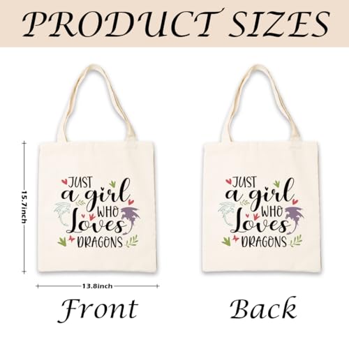WDSXWH - شنطة حمل كرتونية لطيفة من دبليو دي اس اكس دبليو اتش بتصميم عبارة Just A Girl Who Loves Dragons، شنط بقالة قابلة لاعادة الاستخدام، شنط تسوق، شنطة سفر، هدايا الصداقة للنساء والصديقات، ملونة، مقاس M