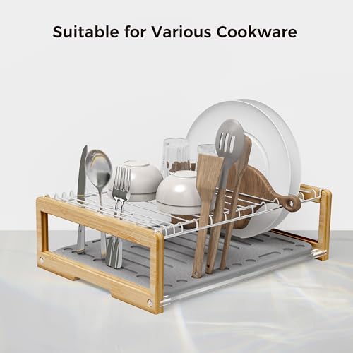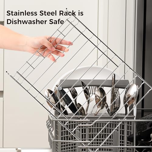 - متعدد الوظائف ومتعدد الاستخدامات: تم تصميم رف الأطباق هذا مع بساط التجفيف بإطار من الستانلس ستيل الآمن غذائيًا ومزيج من الدياتومايت، مصمم لحمل أطباق وأوعية وملاعق مسطحة وأدوات أخرى تصل إلى 11 انش. سواء كان تجفيف الأطباق أو تنظيم سطح المطبخ الخاص بك، فإن رف الأطباق هذا يلبي احتياجاتك