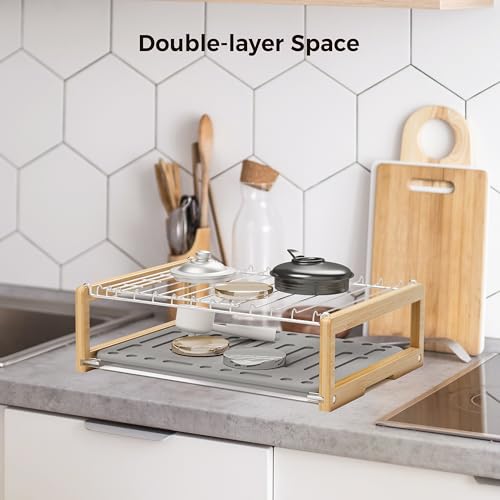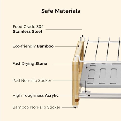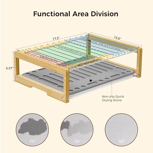 Wealone - رف أطباق للتجفيف حجري مع رف لحمل الأطباق من فولاذ مقاوم للصدأ من ويالون، رف تجفيف أطباق دياتومي فائق الامتصاص كبير الحجم، رفوف الأطباق سريعة الجفاف لطاولة المطبخ