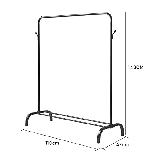 WEASHUME - رف ملابس معدني قائم بشماعة شديدة التحمل لتعليق البالطو والملابس وتجفيفها مع للاحذية مناسب لغرفة النوم اسود من WEASHUME