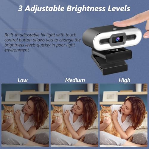 Generic - كاميرا ويب FULL HD WEBCAM 1920x1080Pميكروفون مدمج إضاءة ثلاثية ثابتة التركيز متوافقة مع جميع الاجهزة- واجهة USB 2.0 بتقنية Plug and Play –لون ابيض في اسود