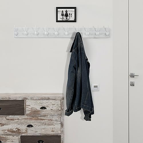 WEBI - شماعة جاكيتات تثبت على الحائط مع 10 خطافات ملابس طويلة 97 سم كبيرة، فتحة 40.6 سم، شماعات جاكيت خشبية للملابس والطواقي من ويبي، أبيض