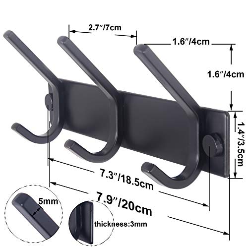 - حامل معطف أسود مثبت على الحائط بـ 3 خطافات، الأبعاد الكلية: 20 سم (طول) × 4 سم (عرض) × 8 سم (ارتفاع)، المسافة بين الخطاف: 6.9 سم. يمكنك الرجوع إلى الصورة الموجودة على اليسار للحصول على مزيد من التفاصيل حول القياس.