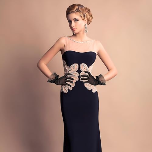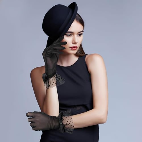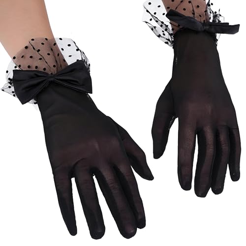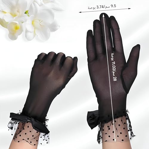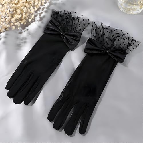 Generic - اكسسوارات الزفاف - قفازات دانتيل سوداء قصيرة مع زخرفة فيونكة، مصممة للنساء اللاتي يحضرن الشاي والحفلات وحفلات الزفاف، تجمع بين النمط الكلاسيكي والحماية العملية من أشعة الشمس.
