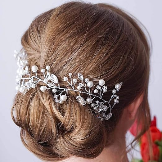 Generic - شريط رأس فضي مزين لحفلات الزفاف للعروس، اكسسوارات للشعر للنساء والبنات