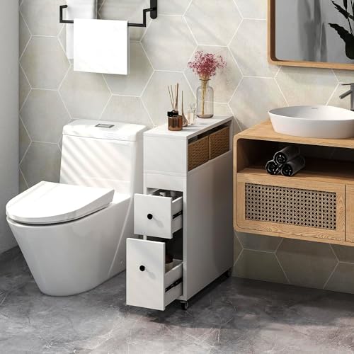 Wedtserha - وحدة تخزين جانبية ضيقة متحركة للتواليت من ويدتسيرها، صغير، أبيض