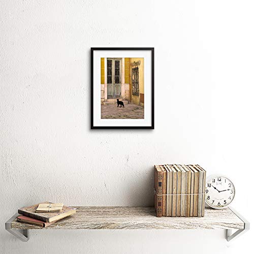 Wee Blue Coo - لوحة فنية جدارية مطبوعة على شكل قطة سوداء مع لون طوب أصفر متباين طوبي وباب قديم بإطار من وي بلو كو