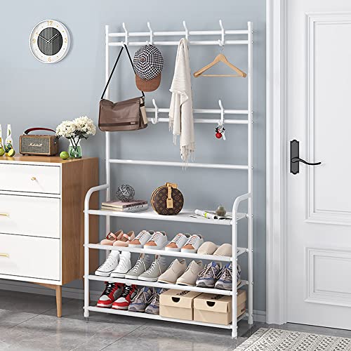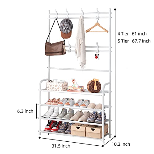 WEECRON - منظم تخزين بحامل للجواكيت و4 أرفف للأحذية مناسب لغرفة النوم والسكن والمدخل من ويكرون، لون أبيض