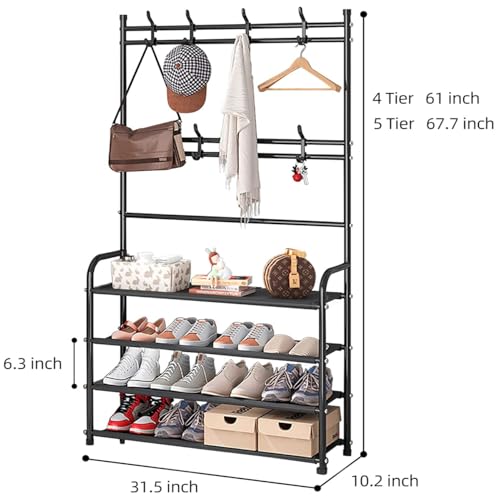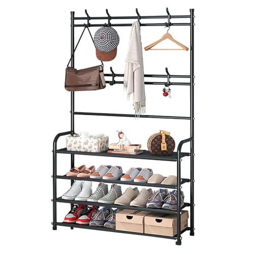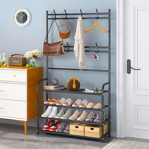 WEECRON - رف أحذية للمدخل مكون من 4 طبقات منظم تخزين مع خطافات لخزانة غرفة النوم من ويكرون، لون أسود، معدن