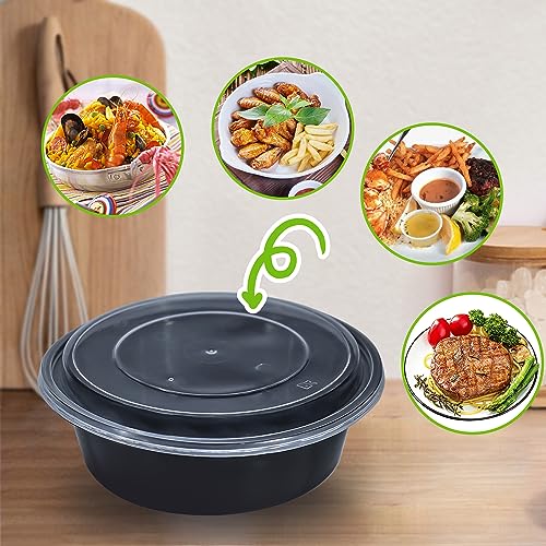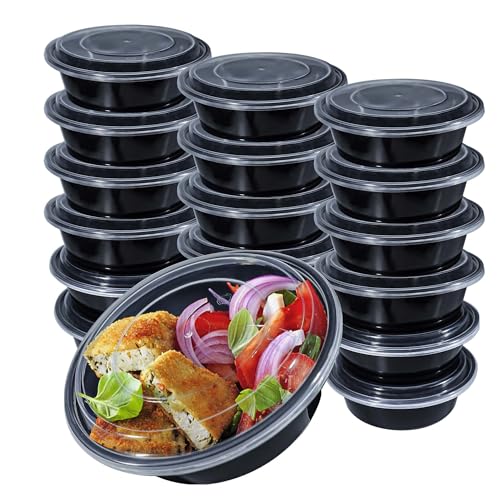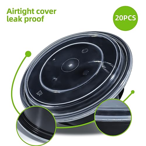 - 【حاويات إعداد الوجبات المستديرة مع أغطية】تتميز حاويات إعداد الطعام الخاصة بنا بسعة 32 اونصة ويبلغ مقاسها 17.5 سم × 13.5 سم × 6.2 سم. تأتي المجموعة مع 20 حاوية سوداء و20 غطاء شفاف.