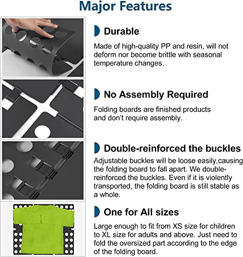 WEEMAGIC - لوح طي الملابس والتيشيرتات قابل للتعديل مصنوع من بلاستيك بولي بروبيلين سهل الاستخدام لتنظيم الغسيل من وي ماجيك، لون أسود