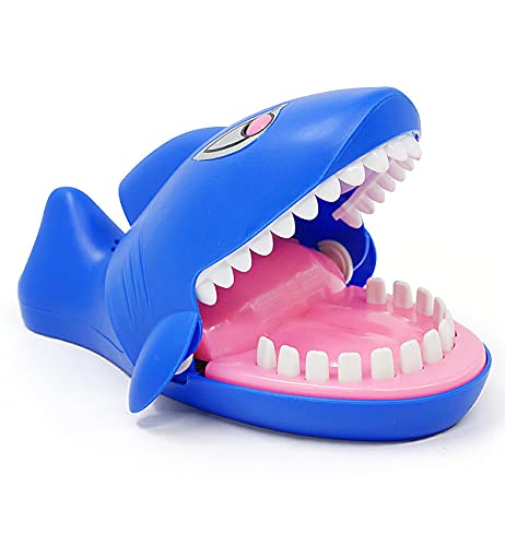 WEEMAN - لعبة طبيب الاسنان الكلاسيكية بتصميم سمكة قرش، يمكنها عض اليد، مزودة بعيون وامضة، ضحكة شريرة، لعبة القرش الجائع، لعبة للحفلة للاطفال والكبار، بلاستيك، أزرق