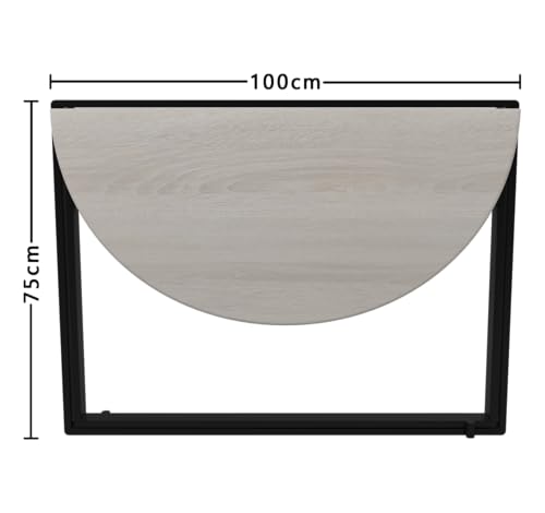 - تفاصيل مميزة: تضيف الشريط الأسود الفريد على سطح الخشب لمسة جمالية بصرية ويكمل القاعدة المعدنية. يبلغ قطر سطح الطاولة الدائري حوالي 1 م عند التمديد الكامل، لتكون مثالية لـ 4-5 أشخاص.