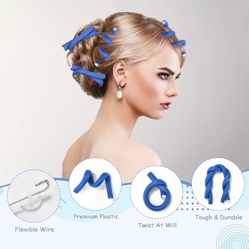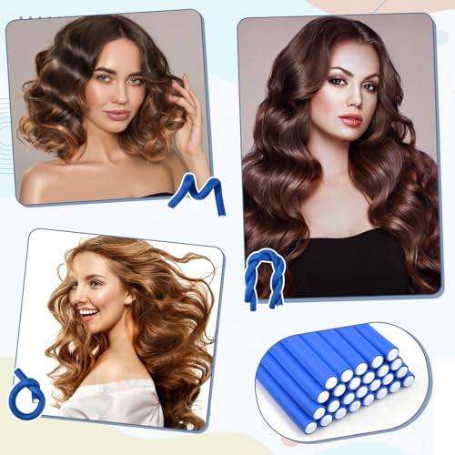 WEFHEF - بكر شعر بدون حرارة قضبان تجعيد مرنة (بابيلات) لتجعيد الشعر أثناء الليل للبنات مصنوعة من الفوم للشعر من WEFHEF باللون الأزرق مجموعة من 40 بكرة