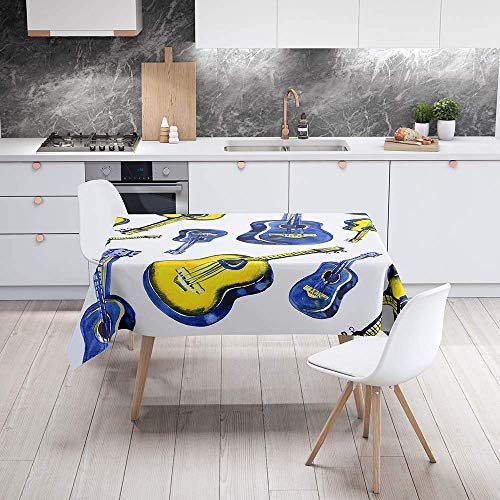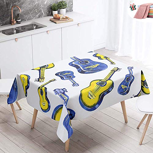 WEHOLY - مفرش طاولة مستطيل مقاوم للماء والبقع سهل المسح بطباعة جيتار مربع مقاوم للزيوت للمنزل والمطبخ وغرفة الطعام والحديقة وديكور الحفلات من ويهولي (اصفر، 100 × 140 سم)، البوليستر