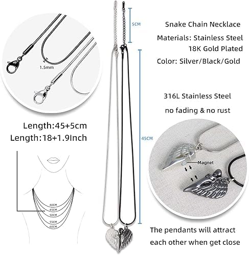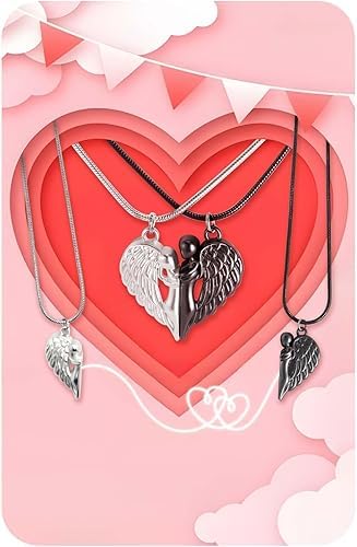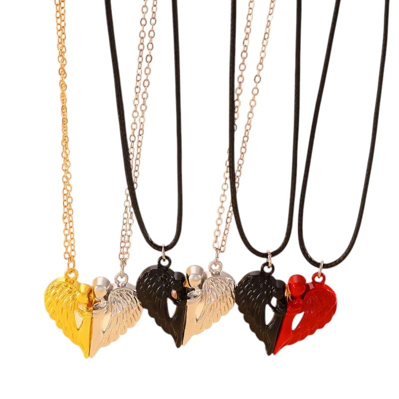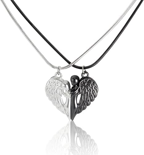 Generic - قلادات مغناطيسية للازواج من ويانجو، قلادة على شكل قلب ملاك وقلب، مجموعة قلادات متطابقة للصديقة والصديق والزوجة والزوج والرجال والنساء، هدية رائعة لاعياد الميلاد والذكرى السنوية
