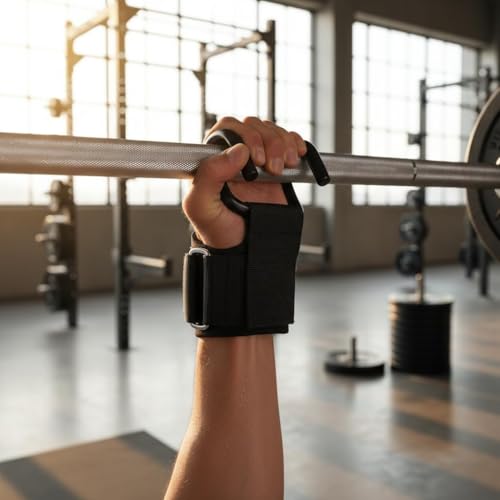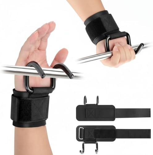 Generic - خطافات رفع الاثقال (زوج)، احزمة معصم لرفع الاثقال، مقابض يد بحزام قابل للتعديل مع بطانة معصم سميكة، خطافات رفع الاثقال لعمليات السحب والرفعات المميتة وتدريبات القوة والتمارين الرياضية للرجال