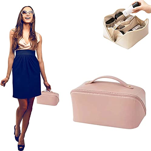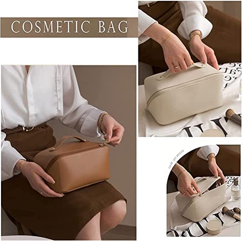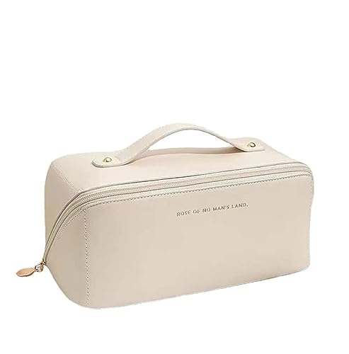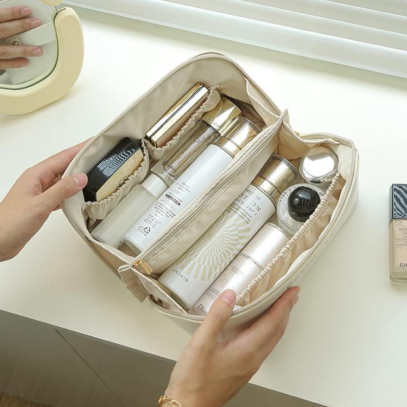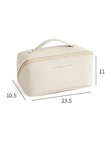 WEIN - شنطة مكياج بسعة كبيرة للسفر محمولة مع سحاب شنط ادوات الزينة من جلد البولي يوريثين المقاوم للماء مقبض ومقسم تخزين الملابس الداخلية ابيض