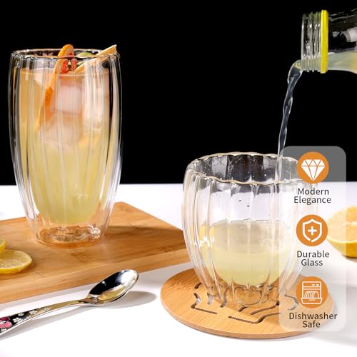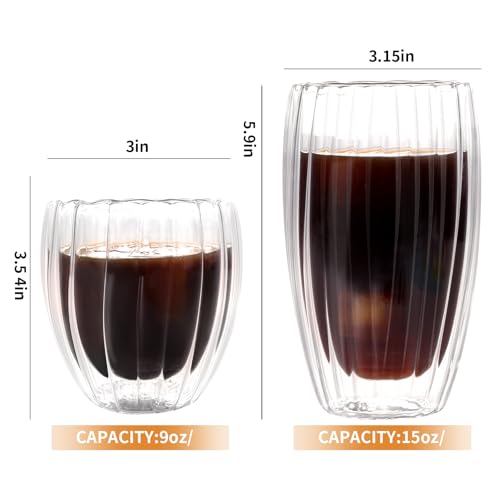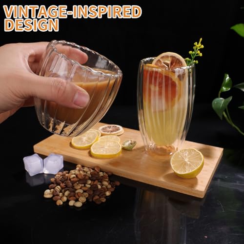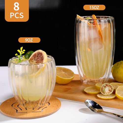 WeirdUncle - مجموعة أكواب زجاج مزدوجة الجدران من ويرد انكل مكونة من 8 أكواب اسبريسو حرارية سعة 284 مل و4 أكواب زجاجية مضلعة سعة 511 مل، تصميم مجوف، مجات قهوة معزولة للقهوة المثلجة واللاتيه والموكا والماء، هدية