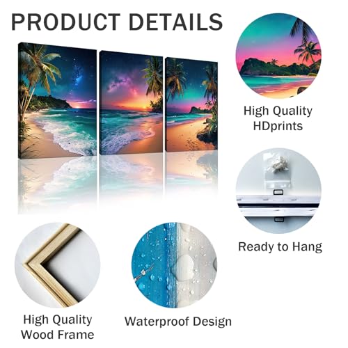 weiyiart - لوحة فنية فنية لشجرة جوز الهند من 3 لوحات قماشية لتزيين الجدران والحمام والمكتب بتصميم اورورا بولاريس الطبيعي مقاس 12×16×16×3 قطع