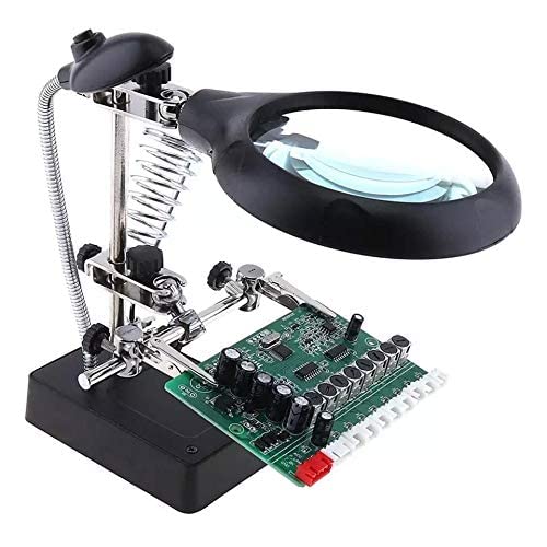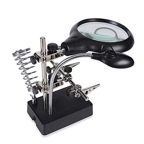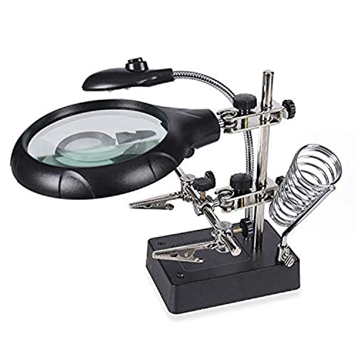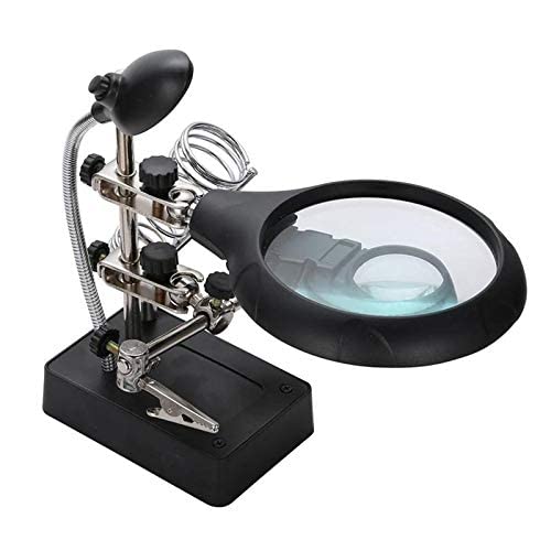 Generic - حامل كاوية لحام ستاند وعدسة مكبرة مع قاعدة بمشابك مساعدة مزودين بخمسة أضواء ال اى دى