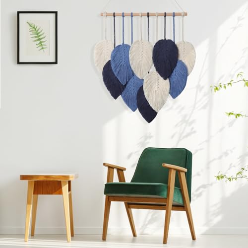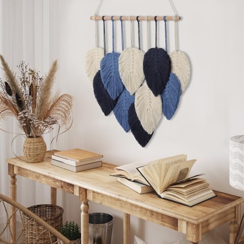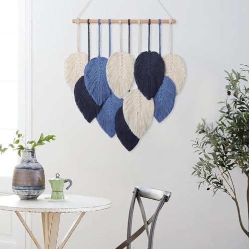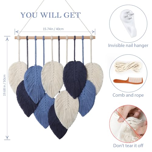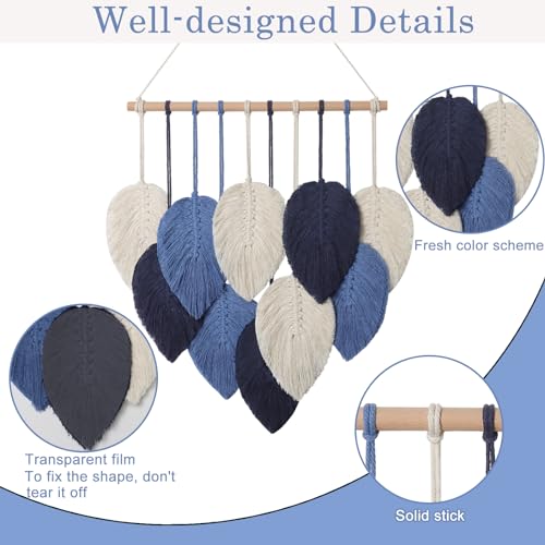 Weldomcor - لوحة جدارية من ويلدومكور، ديكور معلق مكرمية بتصميم أوراق الشجر لغرف النوم والمعيشة والمكتب المنزلي، لون كحلي، مقاس 40 × 50 سم