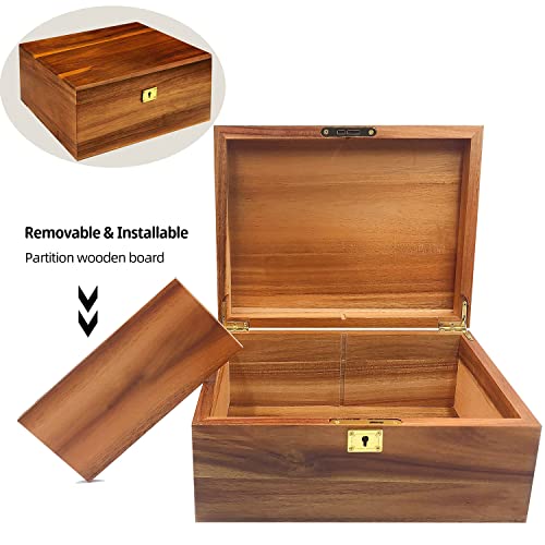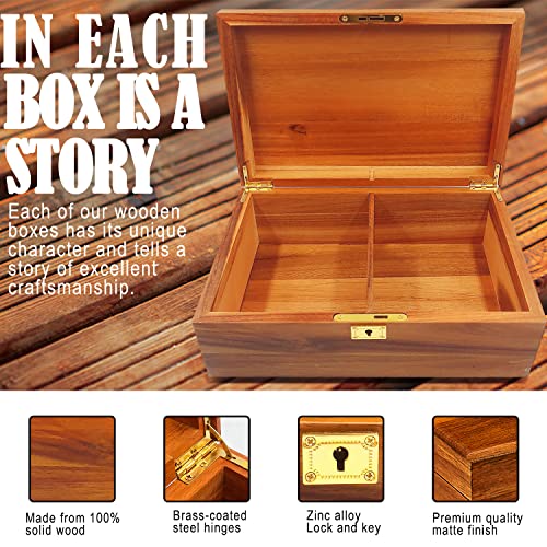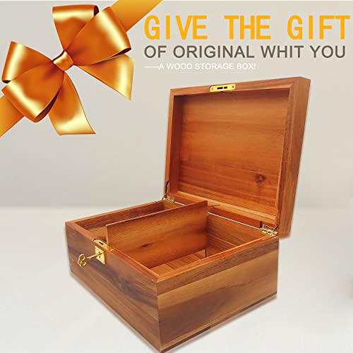 WELITTCON - صندوق تخزين خشبي ريفي مصنوع من خشب الأكاسيا، بأبعاد 28 × 21.5 × 12.7 سم، باللون البني، بسعة 2.27 كجم، مزوّد بقفل لحفظ المقتنيات الثمينة من ويلتكون
