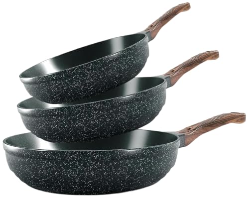 Well Design - طقم طاسات قلي مصبوبة من ويل ديزاين، مكون من 3 قطع (طاسة قلي 20 و24 و28 سم) - زيتي