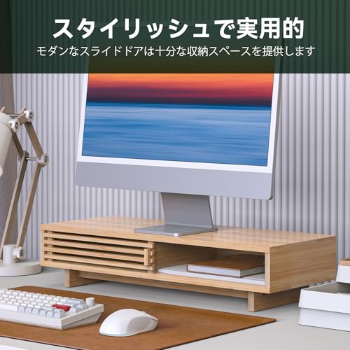WELL WENG - حامل شاشة، حامل كمبيوتر مكتبي، عرض 25.2 انش (64 سم)، حامل كمبيوتر مكتبي، حامل كمبيوتر مكتبي، طبقتين، سطح خشبي، باب منزلق، حامل كمبيوتر، حامل شاشة، تخزين سطح المكتب، منظم