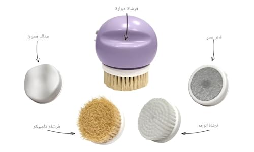 - يجمع نظام العناية بالجسم 4 في 1 بين فرشاة تنظيف الوجه (لإزالة المكياج) وقرص باديكير وفرشاة للوجه وأداة تدليك حادة في وحدة واحدة بحجم راحة اليد.