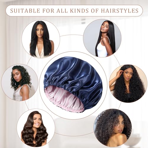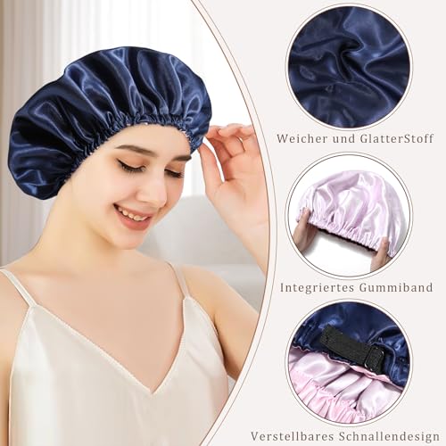WELROG - بونيه شعر من الساتان قابلة للتعديل حريمي من ويلروج - بونيه حريري ساتان قابل للعكس للنوم للنساء، قبعة نوم للنساء، قبعة شعر للنوم ليلا، قبعة حرير ساتان حرير بونيه حرير