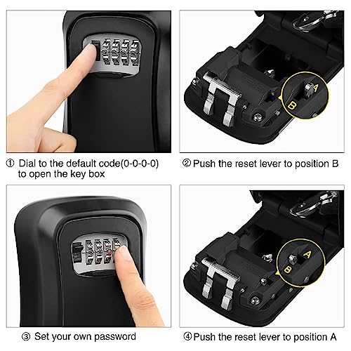 - سهل الاستخدام: يمكن إعادة ضبط خزنة المفاتيح المكونة من 4 أرقام، وهي مريحة للفتح بدون مفتاح ويمكن إعادة ضبطها أو تغيير كلمة المرور في أي وقت. تتميز خزنة المفاتيح الخارجية بمساحة أكبر لحمل المفاتيح وتخزين المقالات وكروت الائتمان وما إلى ذلك