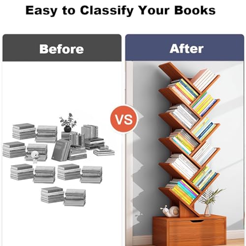 - 【مظهر أنيق】 مع شكل الشجرة الفريد والحبيبات الخشبية الأنيقة، يمكن لأرفف الكتب المعروضة تزيين الغرفة بسحر كلاسيكي وطبيعي. بالإضافة إلى ذلك، هذه هي النسخة المطورة التي تتميز بمتانة ومتانة أفضل من غيرها.