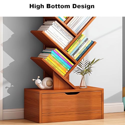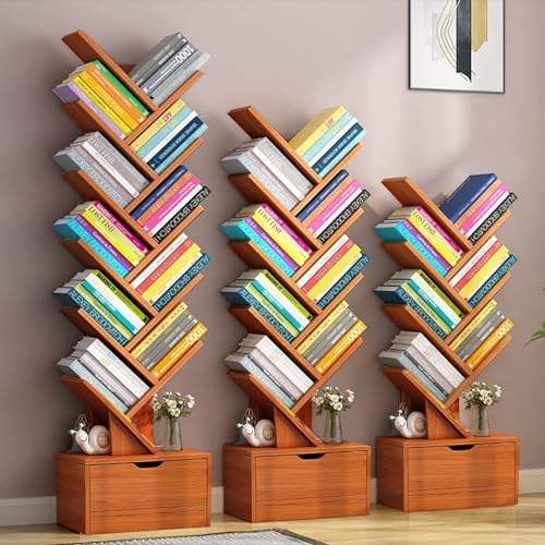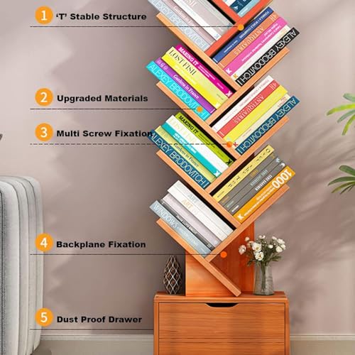 Wemart - رف كتب بتصميم شجرة مكون من 10 طبقات خزانة بـ10 ارفف مع درج تخزين عصري قائم بذاته منظمة للاستخدام في المنزل والمكتب وغرفة المعيشة بني داكن خشب