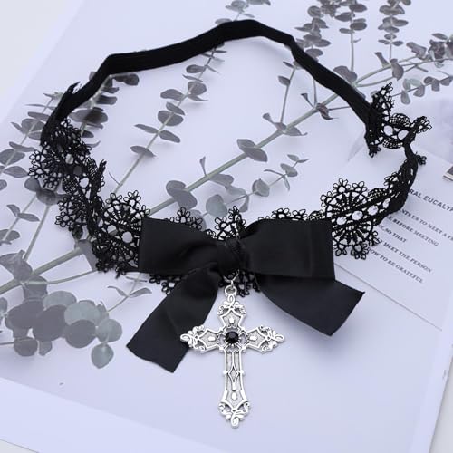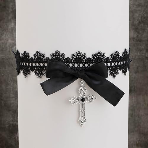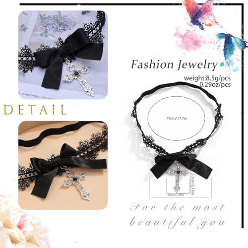 Wendalern - مجموعة أربطة زفاف للعروس من وينداليرن بشريط أسود على شكل فيونكة من الدانتيل، رباط من الدانتيل مرن وقابل للتمدد مع إكسسوار للجسم والفخذ بتصميم زهور متقاطعة