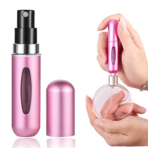 Wendergo - زجاجة عطر قابلة لإعادة المل صغيرة ومحمولة وفارغة للسفر توضع في شنطة اليد والجيب والأمتعة من ويندرجو، سعة 5 مل بلون بينك