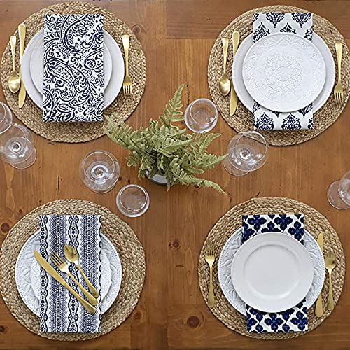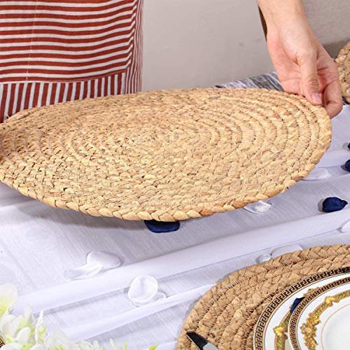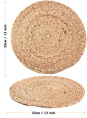 WENFOME - مفارش طاولة دائرية من نسيج محبوك من وينفومي، مفارش أطباق مقاس 33 سم، مفارش من الخوص الطبيعي، مفارش طاولة مجدولة من خوص خزامى الماء، مفارش راتان منسوجة بنمط ريفي لطاولة الطعام، 4 قطع