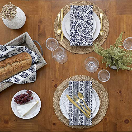 - 2. مفارش للزينة: مفارش الأطباق الدائرية المنسوجة مصنوعة يدويًا، وهي غير قابلة للانزلاق وعازلة للحرارة، من نسيج محبوك مدمج قوي ومتين. كما تعد مجموعة مفارش الطاولة المنسوجة من خزامي الماء الطبيعية ديكور جيد لطاولتك. يمكنك وضعها تحت فازة جميلة تضيف طابعًا شخصيًا ولمسة من الجمال الريفي إلى طاولة الطعام الخاصة بك. هذه المجموعة المكونة من 4 مفارش جاهزة لمساعدتك على الاستمتاع بأناقة.