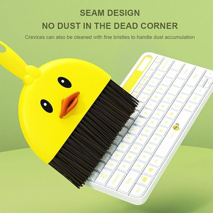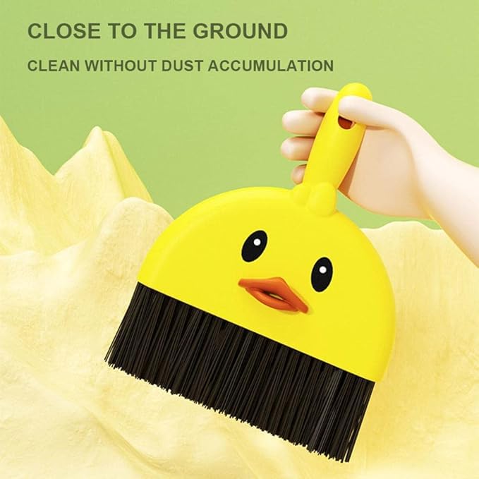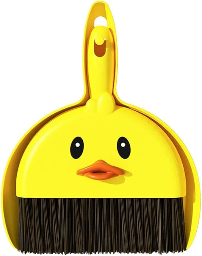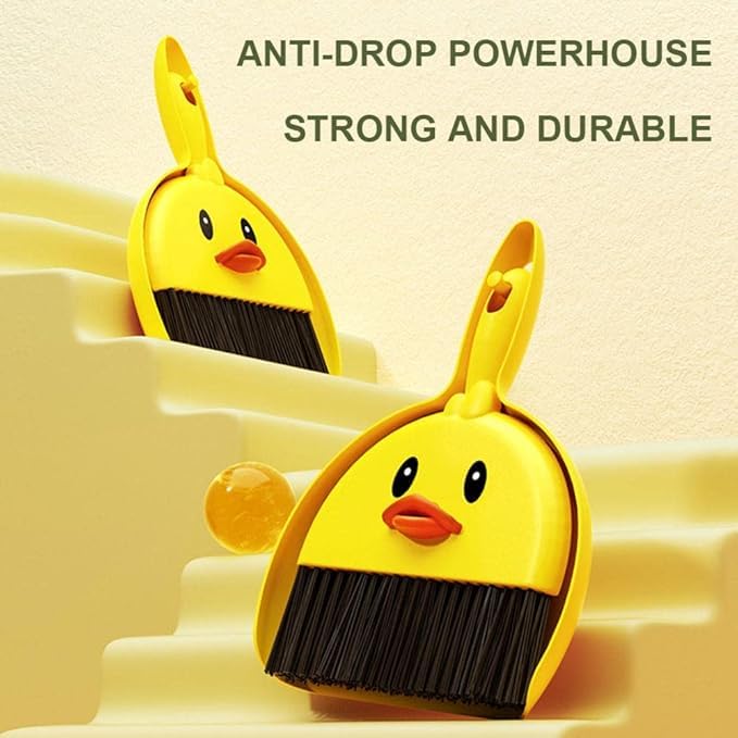DRaX - طقم مكنسة يدوية صغيرة على شكل بطة وجاروف من وينجو، لون اصفر، تصميم كرتوني لطيف