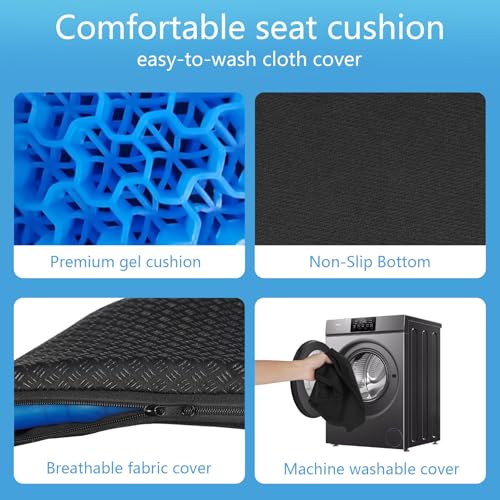 - ناعمة ومريحة - مخدة المقعد مصنوعة من مادة جل عالية الجودة مع نسيج من طبقتين، تزن تقريبًا. 1.2 كجم، إنها ثقيلة ومستقرة، ولكنها ناعمة وتتميز بملمس ممتع. يأتي مع غطاء قماشي بسوستة غير قابلة للانزلاق، سهل الغسل.