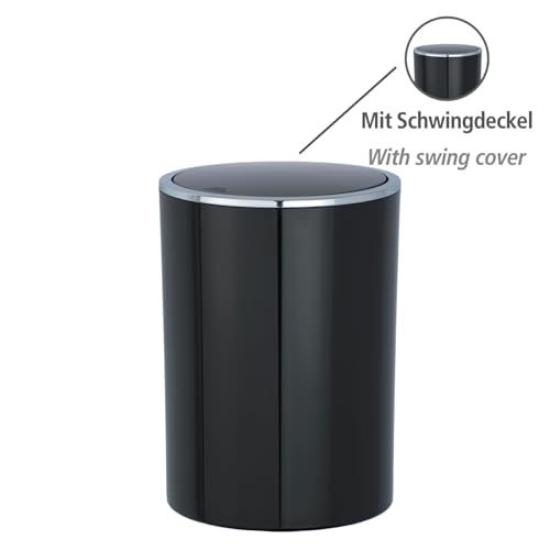 WENKO - وينكو سلة مهملات بغطاء متارجح من انكا، مصنوعة من بلاستيك ABS، اسود/كروم، 18.5 × 18.5 × 25.5 سم