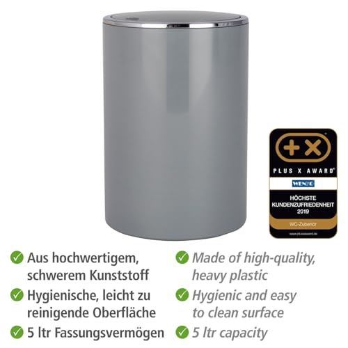 WENKO - سلة مهملات بغطاء متأرجح انكا من وينكو مصنوعة مادة ABS رمادي 18.5 × 18.5 25.5 سم أكريلونيتريل بوتادين ستايرين